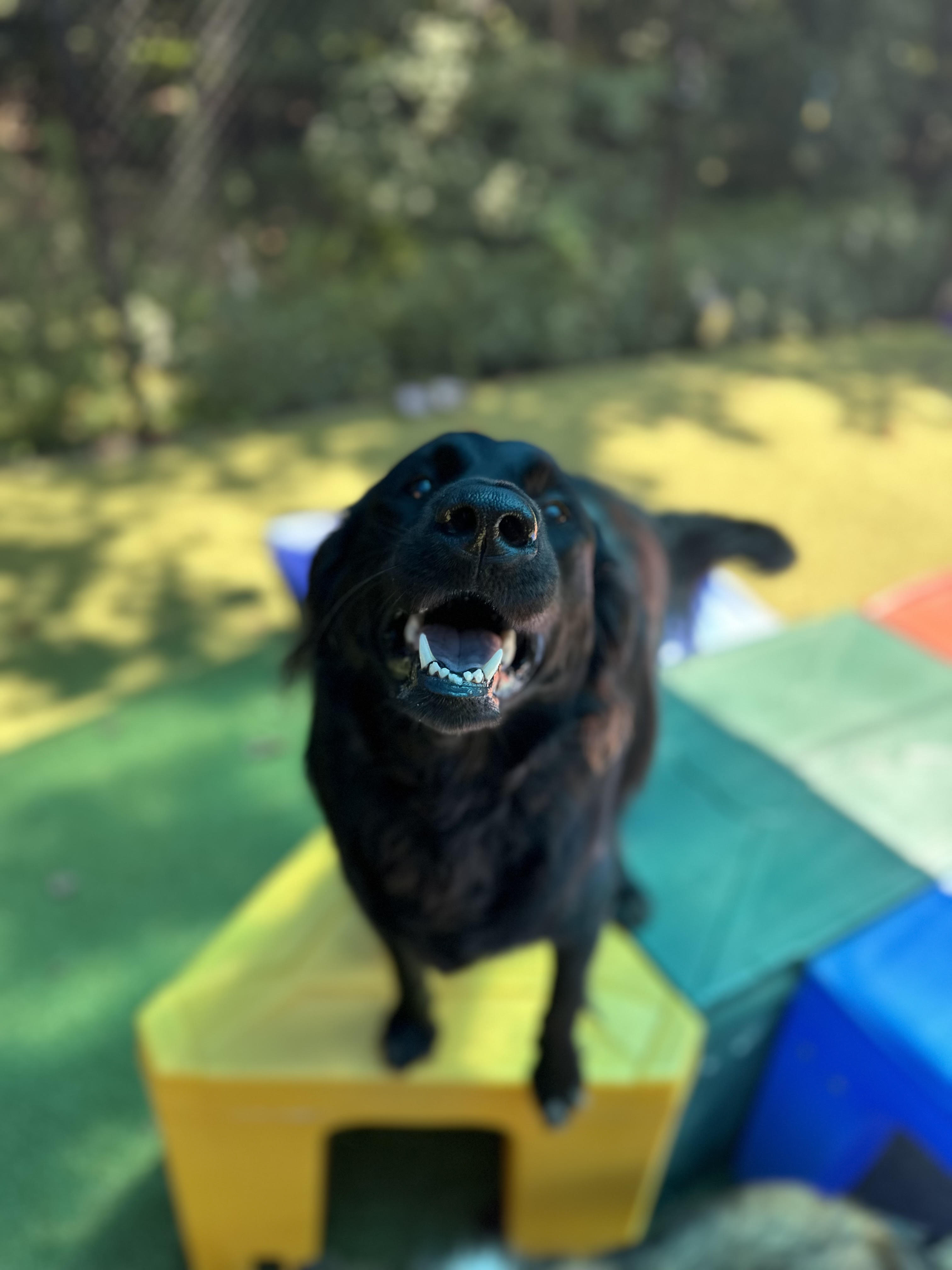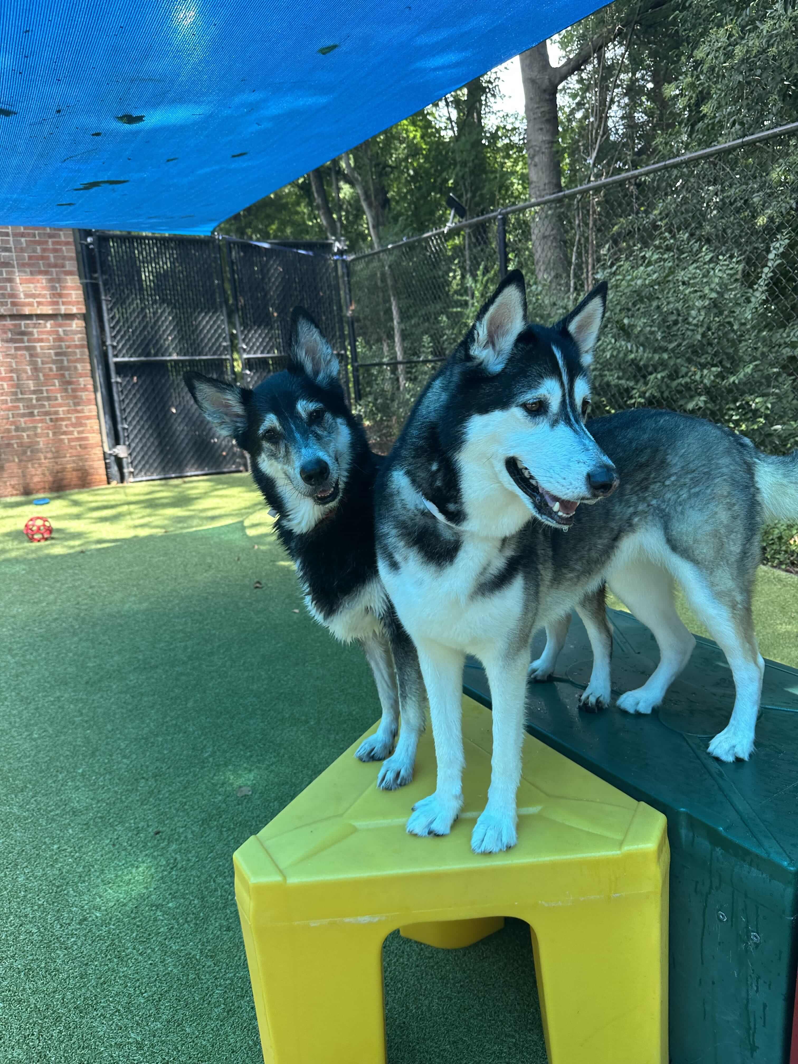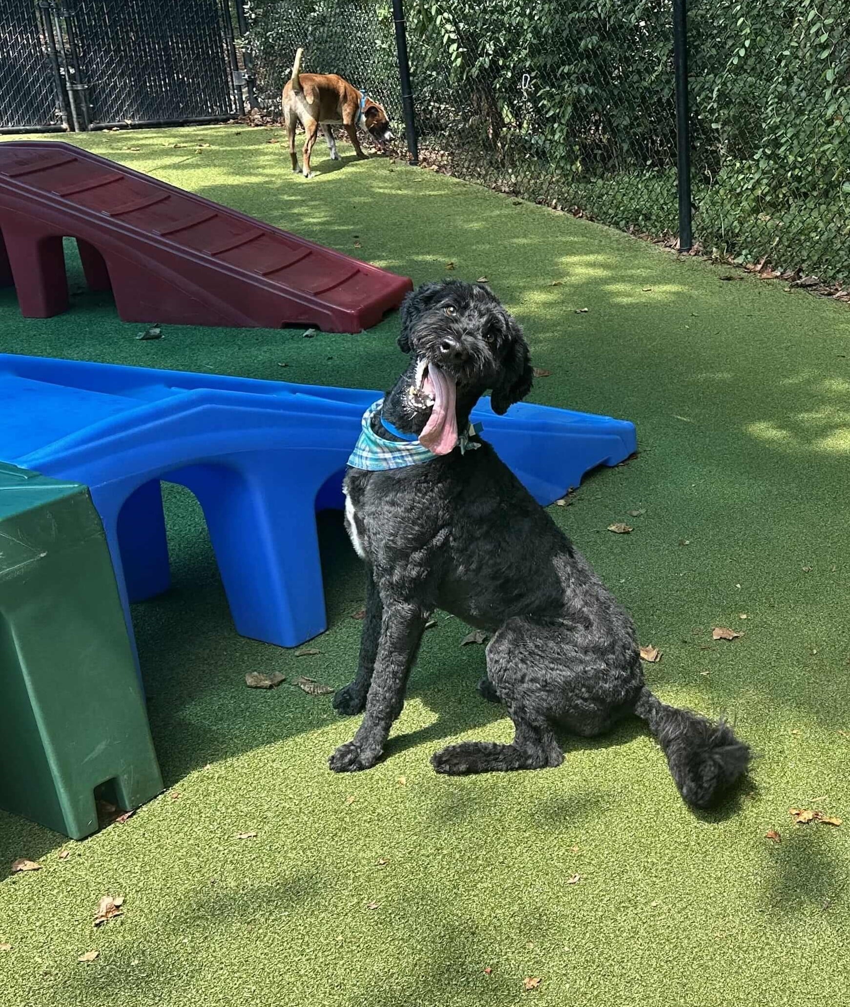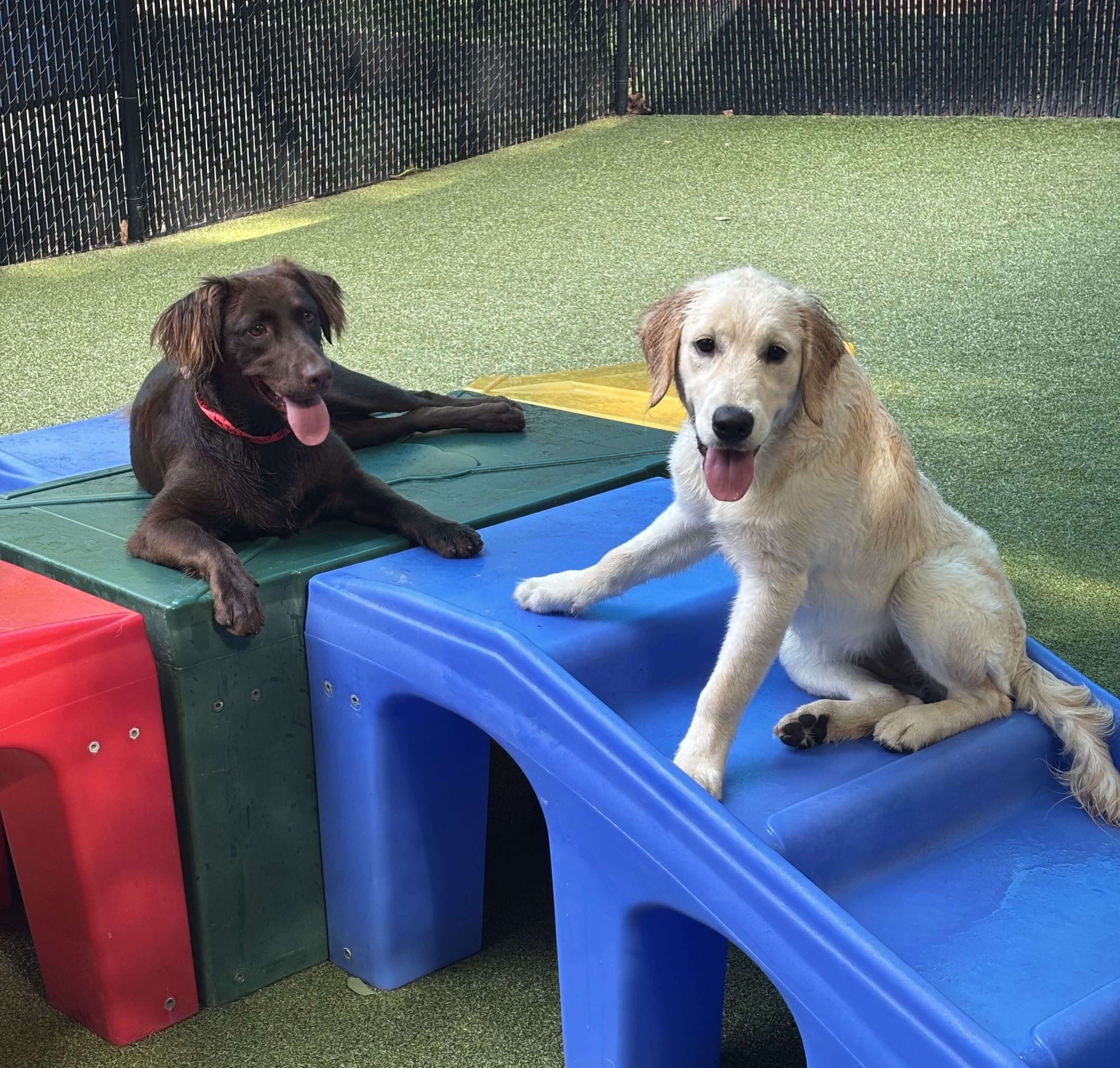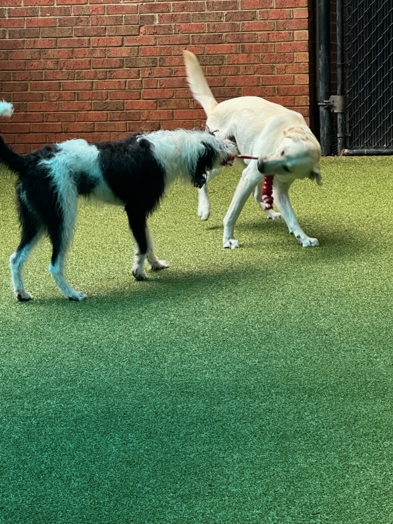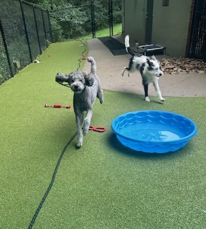 - Dogs are able to roam, socialize, play, and relax in a safe outdoor turfed area. Your dog may play ball, fetch, or just get snuggles from our loving staff while he/she spends the day with us.